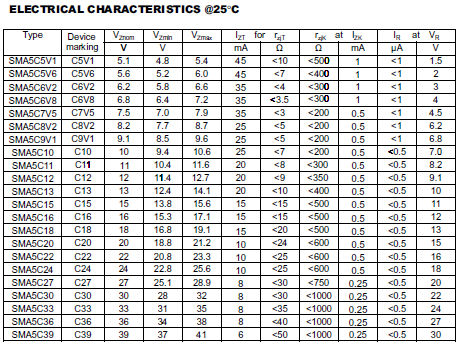All Products >> ZENER DIODES >>SMA5C5V1~SMA5C39